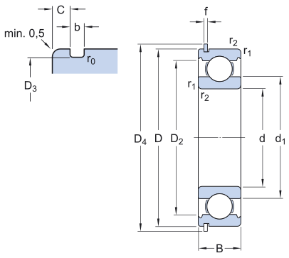 外圈带止动槽和止动环